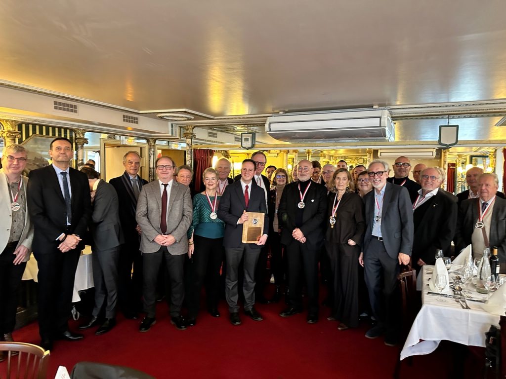 Comme chaque année, l’Académie a procédé à l’attribution de ses prix. Pour l’année 2025, le grand prix a été attribué à l’équipe de France de boucherie, sacrée lors de la Coupe du Monde organisée pour la première fois en France en mars dernier. C’est Christophe Ip Yan Fat, capitaine de l’Equipe de France, qui a reçu le « billot d’honneur » de l’Académie des mains de son président Bernard Greffeuille, en présence de Paolo Desbois, lui-même champion du monde “création artistique de buffet”. Une distinction qui vient récompenser « l’excellence du geste, du métier et du savoir-faire en action » mais aussi « l’esprit d’équipe et cette capacité si française à allier exigence et créativité », a salué Bernard Greffeuille.
